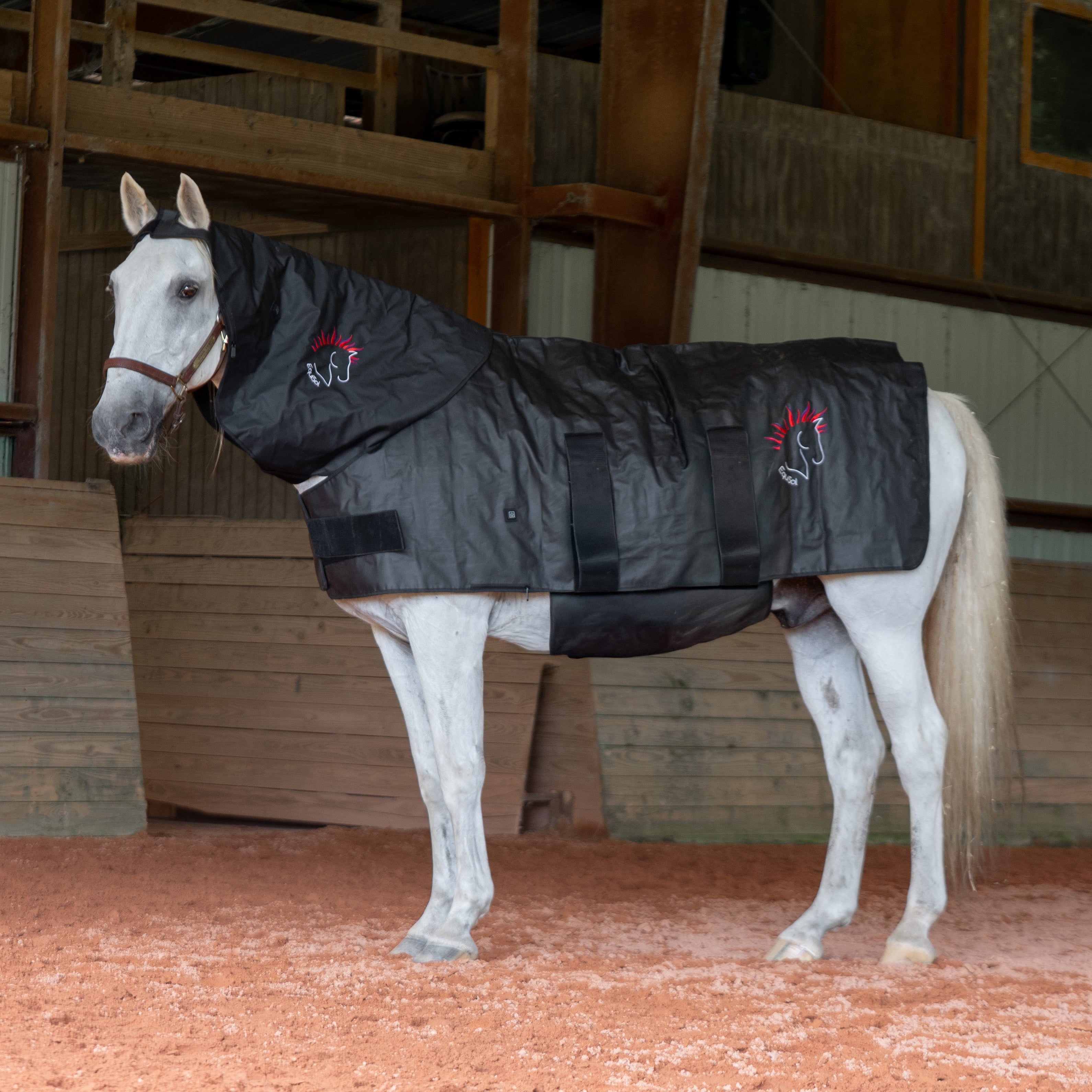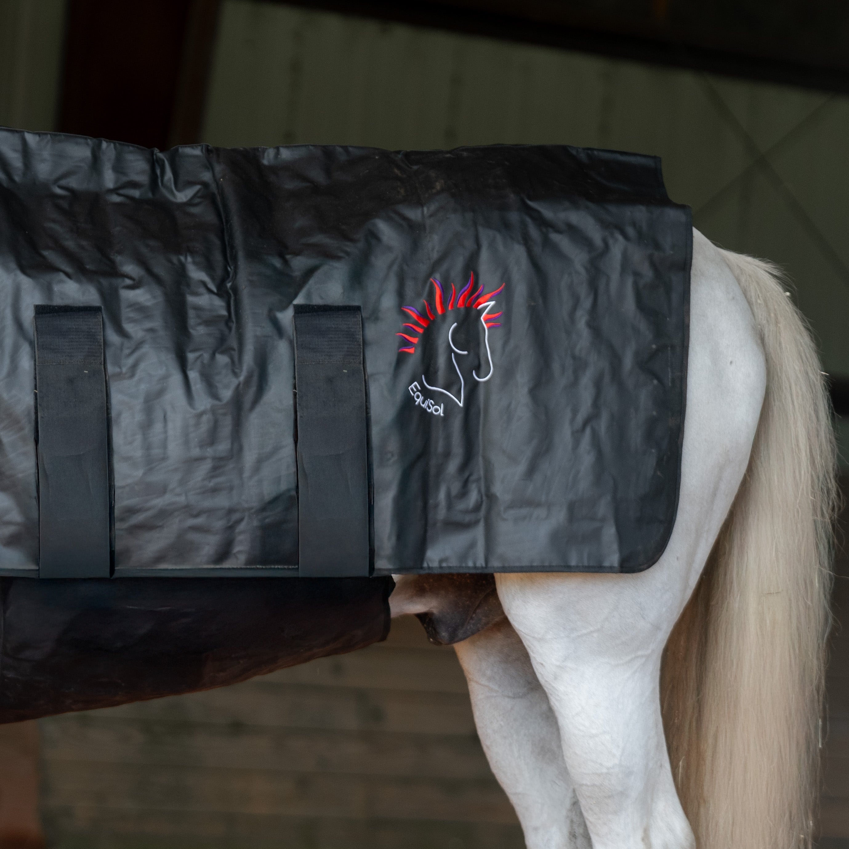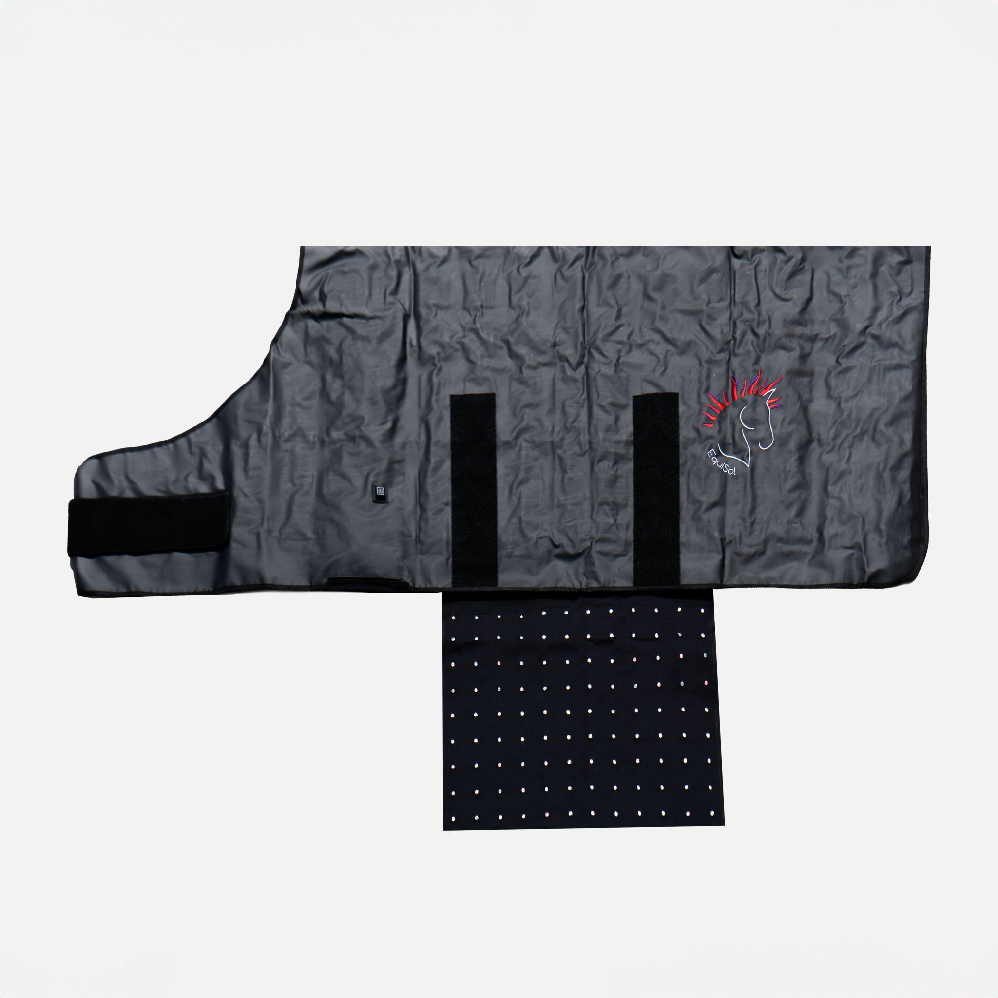 A key differentiator is the patented belly band, engineered to deliver targeted abdominal and ventral line coverage while maintaining full spinal support. Paired with a detachable neck piece that extends fully to the poll, EquiSol provides comprehensive, consistent therapy across the horse’s most critical areas in a secure, equine-friendly design.